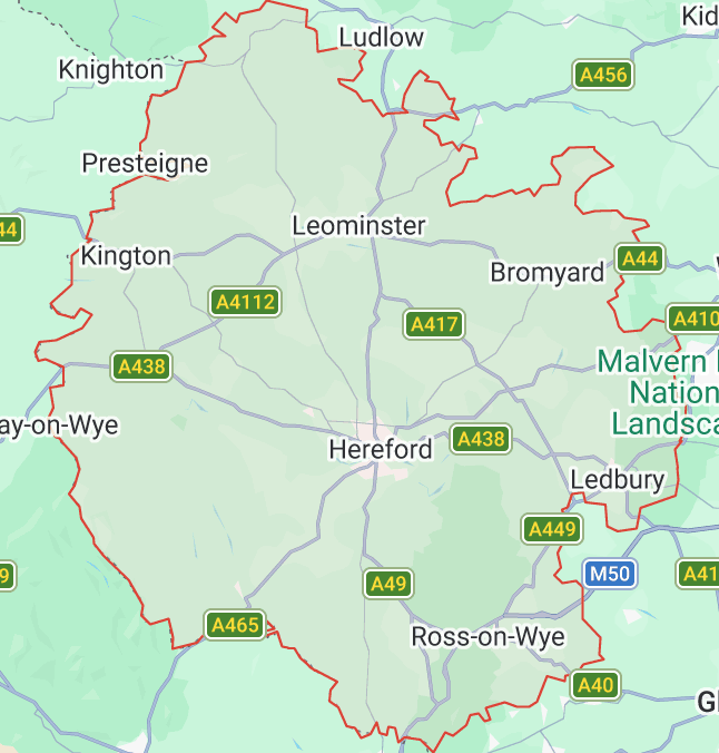 - Wide coverage across Herefordshire — major towns, villages, rural areas